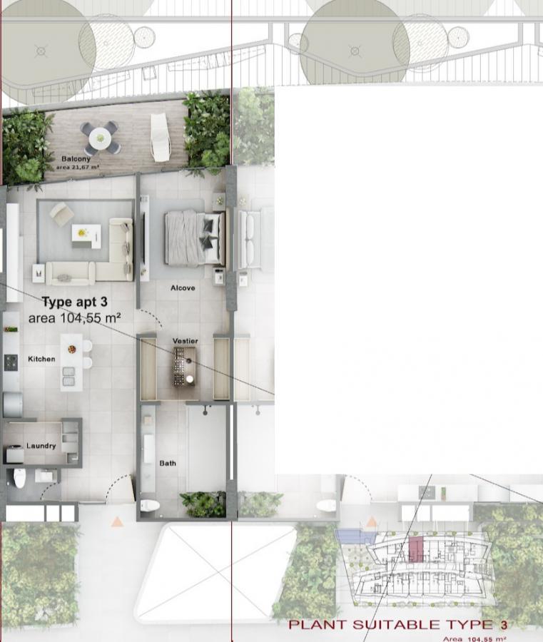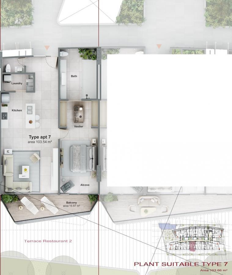 Inside space: 103,54m2 / outside space: 15,97 m2